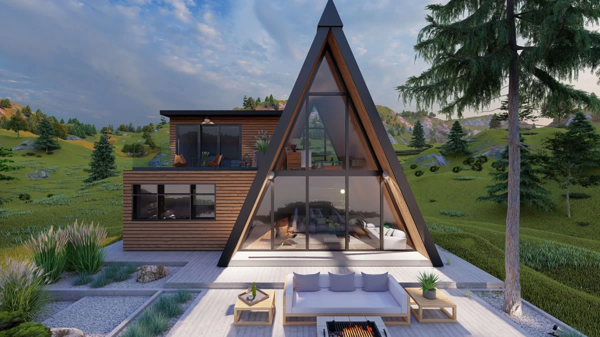 Osmislili smo potpuno novi, jedinstven dizajn A-frame kuće. Ova moderna kuća A-frame je dašak svežeg zraka.