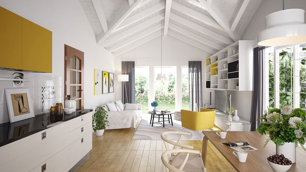 Ova kuća obiluje lepim i visoko kvalitetnim detaljima krova, trema i velikim staklenim površinama. Unutrašnji raspored prostorija je pažljivo i optimalno uklopljen u funkciju stanovanja i pruža pravi osećaj komfora. Kao porodični dom, sastoji se od prostrane dnevne sobe sa direktnom vezom sa tremom i dve spavaće sobe. Kupatilo i kuhinja su izvedeni sa granitnom keramikom i dizajniranom sanitarijom prve klase.