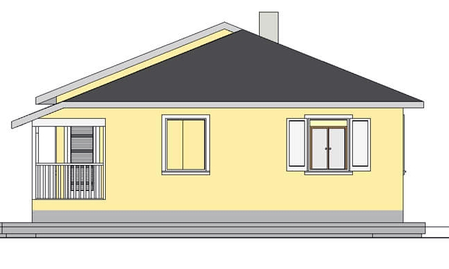 Pored dnevnog dela koji obuhvata dnevni boravak sa trpezarijom i kuhinjom, sadrži kupatilo i tri spavaće sobe. Dve sobe većih površina stvaraju kontrast nad manjom sobom pogodnom za rad ili dečiju igru. Dnevni prostor i spavaći deo su smaknuti i doprineli su dinamičom odnosu krovnih delova pojavom razlike u visinama.