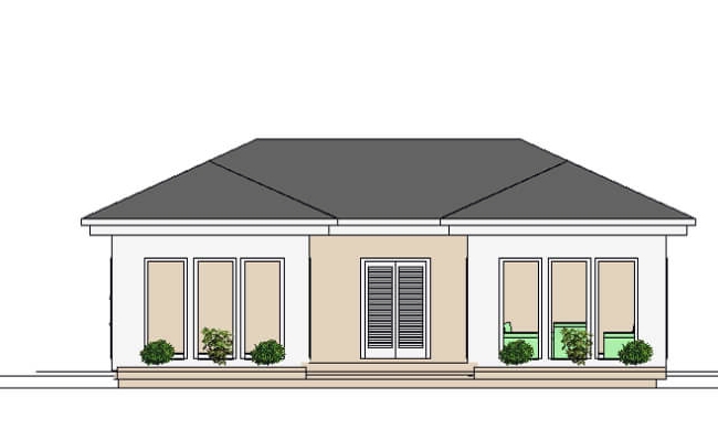 Moderna montažna kuća savremenog je rasporeda prostorija, projektovana je kao četvorosoban stan sa nešto većim dnevnim boravkom i sa puno svetlosnih otvora. Prostrana dnevna grupacija prostorija uključuje kuhinju, trpezariju i veliki dnevni boravak koji se širi na terasu kroz velike svetlosne površine. Iz spavaće sobe je omućen pristup na istu terasu i sa identičnim otvorima ističe simetrični izgled levog i desnog dela kuće koji je otvoren dvorišnim površinama.