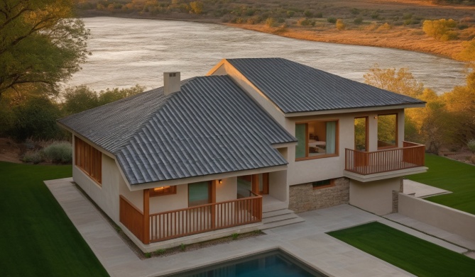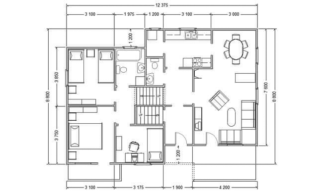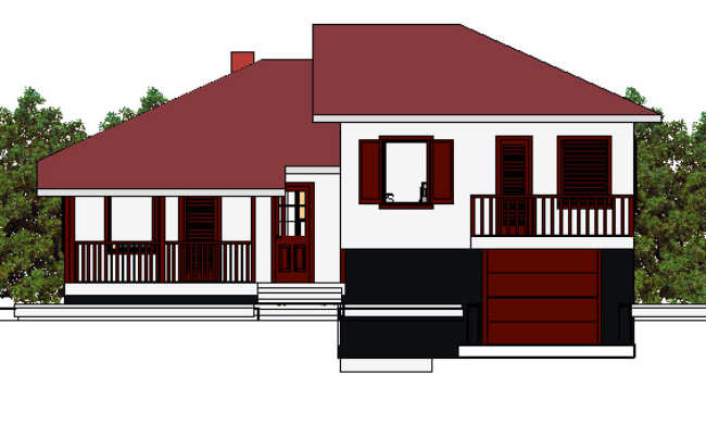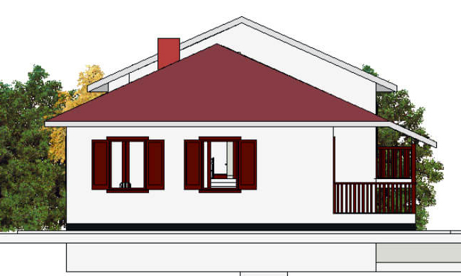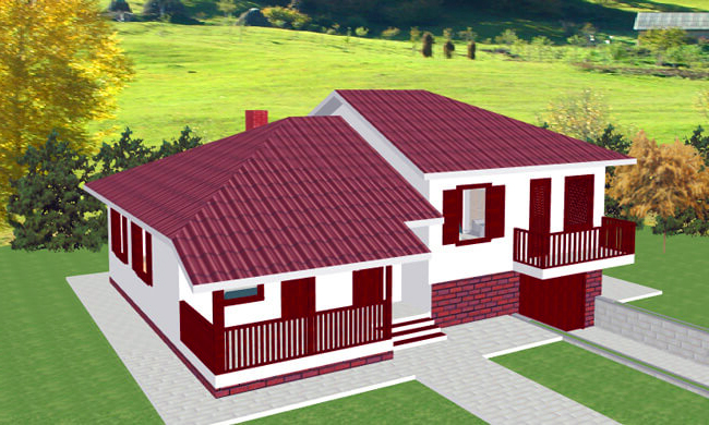Montažna kuća AX-101 bruto površine 111,42 m2 (neto površine 99,5 m2) iz kategorije poluspratnih (kaskadnih) montažnih objekata. Denivelacija unutrašnjeg prostora doprinela je i dinamičnom izgledu krova. Garažno-podrumski prizemni deo sačinjen je od čvrstog materijala, a stambeni deo sadrži tri spavaće sobe, wc, ostavu, kuhinju i dnevni boravak sa trpezarijom. Spavaći deo i kupatlo su smešteni iznad garaže, dok dnevna grupa prostorija zauzima nižu etažu. Terasa i balkon gledaju na prednji deo kuće i formiraju raskošno lice eksterijera.
