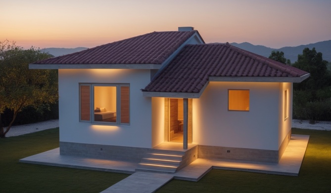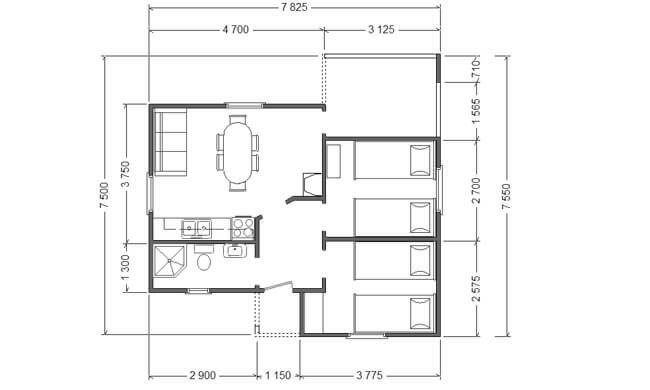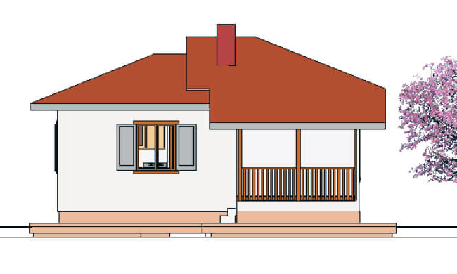 Stambena kuća AX-44a bruto površine 49,23 m2(neto površine 43,01 m2) je predviđena kao trosobni stan na maloj površini. Pored dve spavaće sobe sadrži dnevni boravak sa trpezarijom, kuhinjom i izlazom na natkrivenu terasu. Dobra organizacija prostora je omogućila postojanje dve funkcionalne spavaće sobe i komforan dnevni deo. Dinamični izgled krova daje vizuelni utisak većeg objekta.