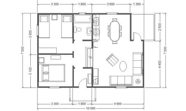 Stambena kuća AX-68 bruto površine 76,35 m2(neto površine 68,32 m2) je projektovana kao trosobni stan jednostavne orijentacije za komforno stanovanje. Unutrašnji prostor je jasno podeljen u dve celine koje denivelacijom istuču svoju delimičnu individualnost. Dnevni boravak, sa otvorenom trpezarijom i kuhinjom zauzima nižu etažu, a dve spavaće sobe i kupatilo su u ravni višeg nivoa. Dnevni prostor obogaćuje natkrivena terasa. Razilka u visini se pojavljuje i u krovu, a natkrivanje ulaznog dela i terase obogaćuje arhitekturu krovnih ravni.