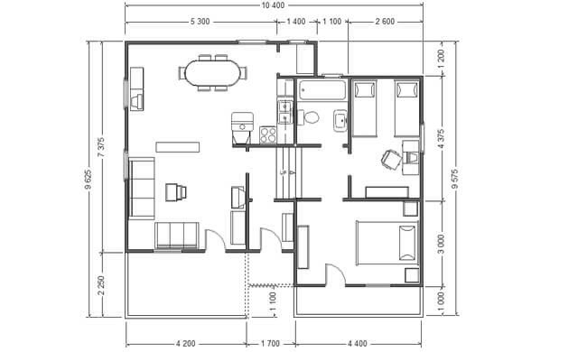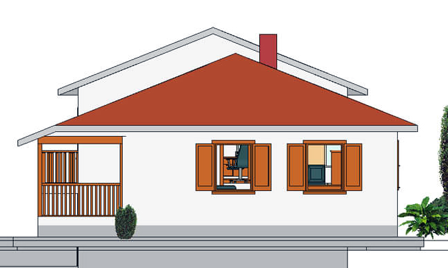 Savršeno spakovana širokoj primeni kuća AX-86 bruto površine 97.72 m2 je projektovanjem zamišljena kao kaskadna varijanta i predviđena je kao trosobni stan koji se sastoji od dnevnog dela: kuhinja, trpezarija, dnevni boravak sa izlazom na terasu, kupatilo, i od spavaćeg dela; dve spavaće sobe. Pogodna je za placeve u nagibu i svojim korisnicima nudi vrstu slobode kakvu nude i kuće većih kvadratura.