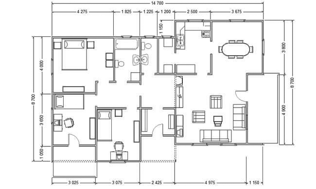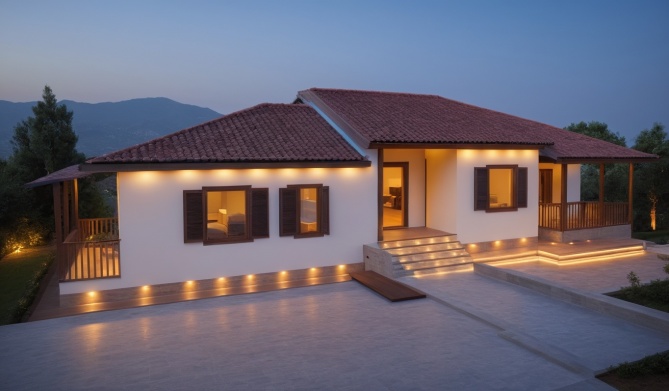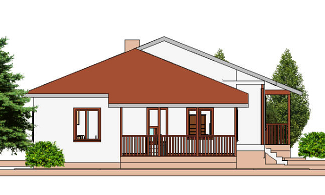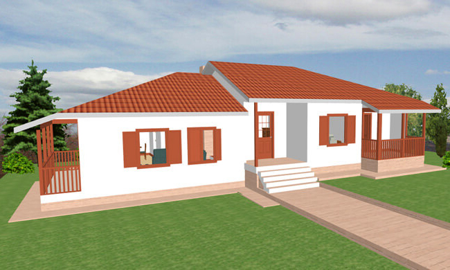 Montažna kuća AX-127 građevinske bruto površine 140,65 m2(neto površine 126,84 m2) funkcionalno je koncipirana kao četvorosobni stan koji ima tri spavaće sobe, kupatilo, wc, ostavu, kuhinju i dnevni boravak sa trpezarijom. U sastavu ove površine nalaze se i dve terase. Ova prizemna kuća formalno je podeljena u dva dela. Visinska razlika i smaknuće doprineli su i dinamičnom izgledu krova. Fizički odvojena kuhijna ima i odvojeni špajz za odlaganje namirnica. Balkonska vrata povezuju natkrivenu terasu koja je uvučena u otvoreni prostor dnevnog boravka. Kao celina pruža prijatan ambijent porodičnom življenju.