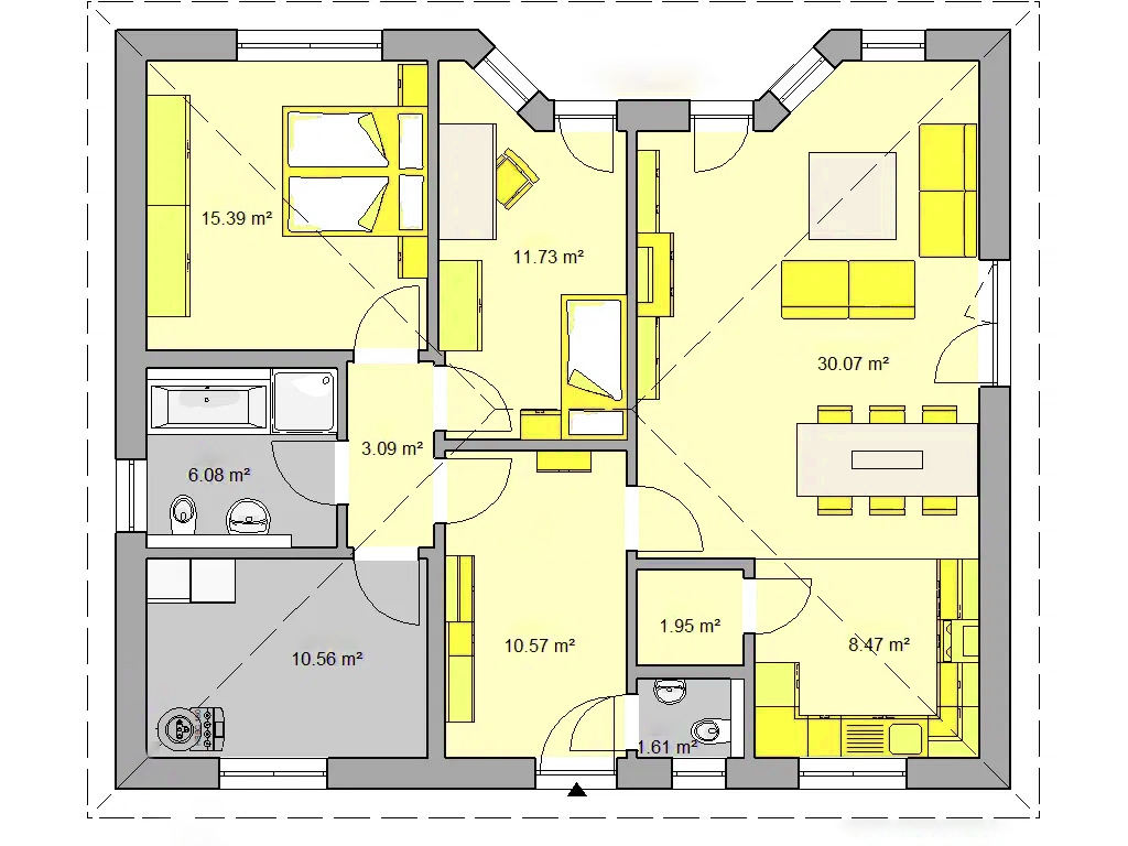 Sa 3 sobe na 100 m² neto površine, odnosno 129,42 m² bruto površine, Model NV-130 nudi optimalan raspored prostorija za dobrobit malih porodica ili starijih koji žele da žive bez prepreka do starosti. Dobro osmišljen i pametno isplaniran, ovaj plan postaje pravo prostorno čudo, gde svaki stanar ima dovoljno prostora za slobodu. Model NV-130 ne ostavlja ništa da se poželi i savršen je dom za mlade i stare!