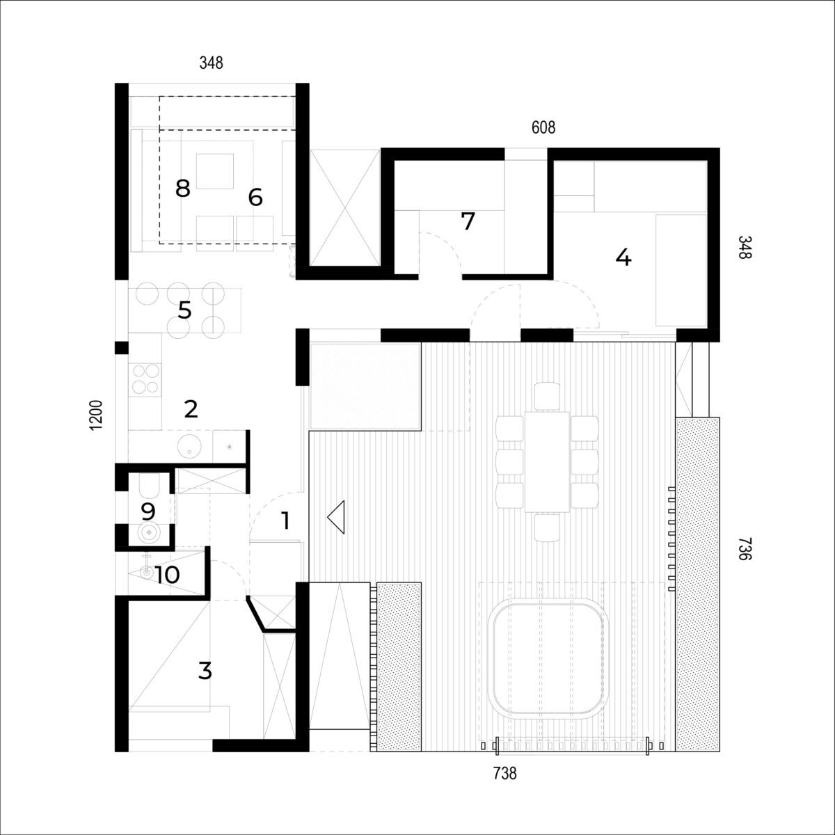 Kuhinja sa trpezarijskim stolom i 5+2 stolice